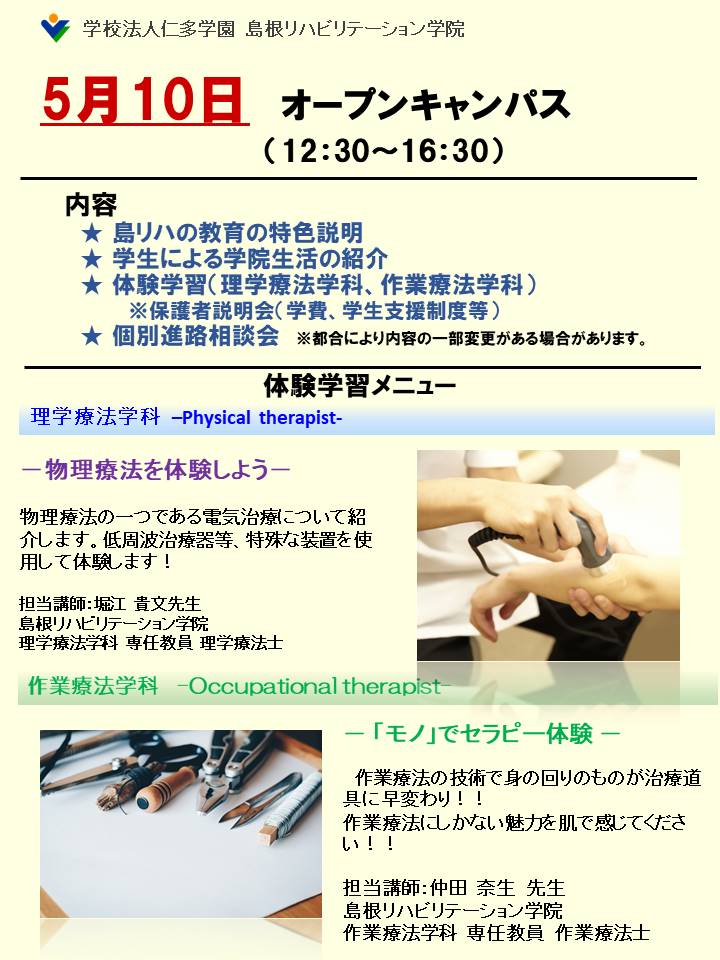 『5月10日(日)にオープンキャンパスが開催されます!』