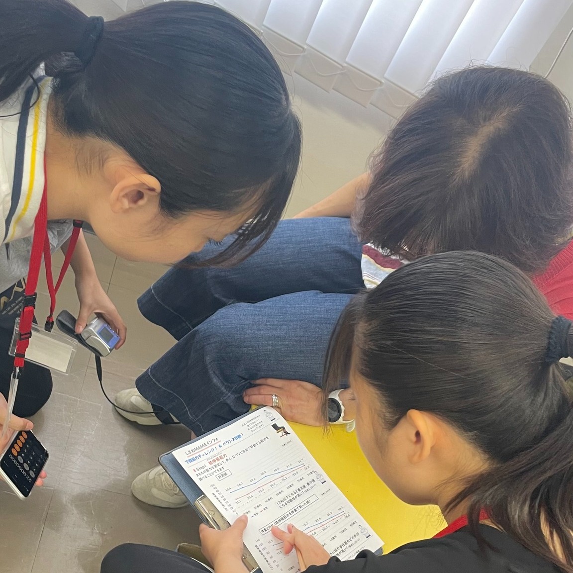 当日は、自分の筋力が各年代と比較できるグラフ、また、筋力が低下すると要支援や要介護のリスク、転倒のリスクが上がる事を伝える資料を作成し、配布しました!