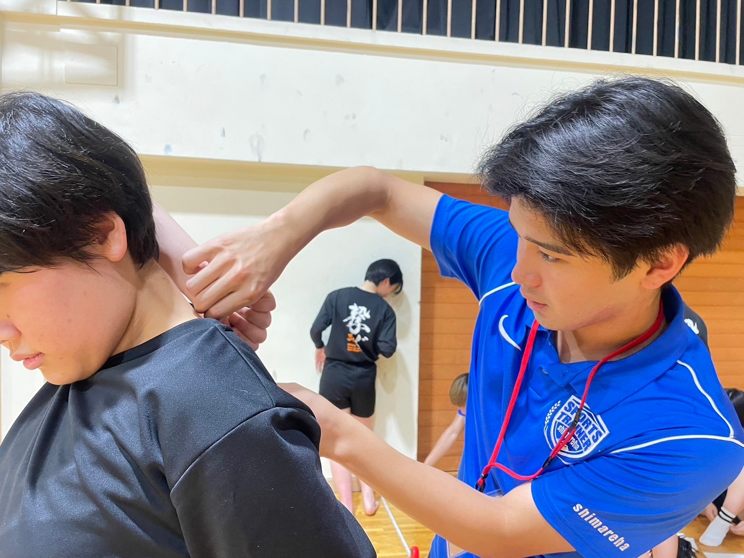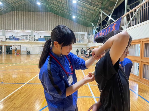 理学療法学科教員で島根県AT協議会所属トレーナーの堀江先生に帯同して、スポーツトレーナーサークルに所属している学生が