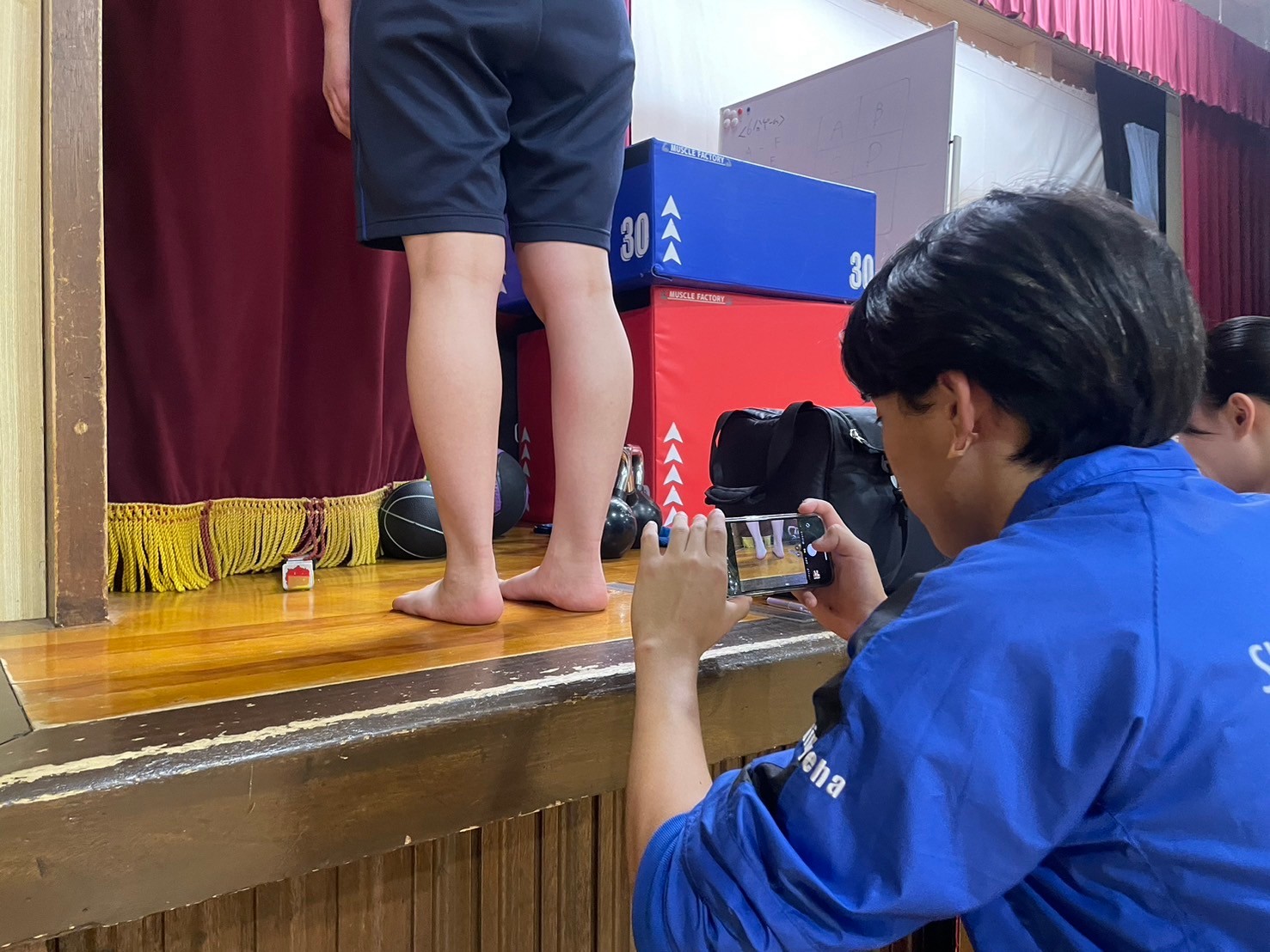 学院に戻り、堀江先生と一緒に学生が分析を行い、結果を後日選手へフィードバックして、トレーニングの内容を立案していきます。