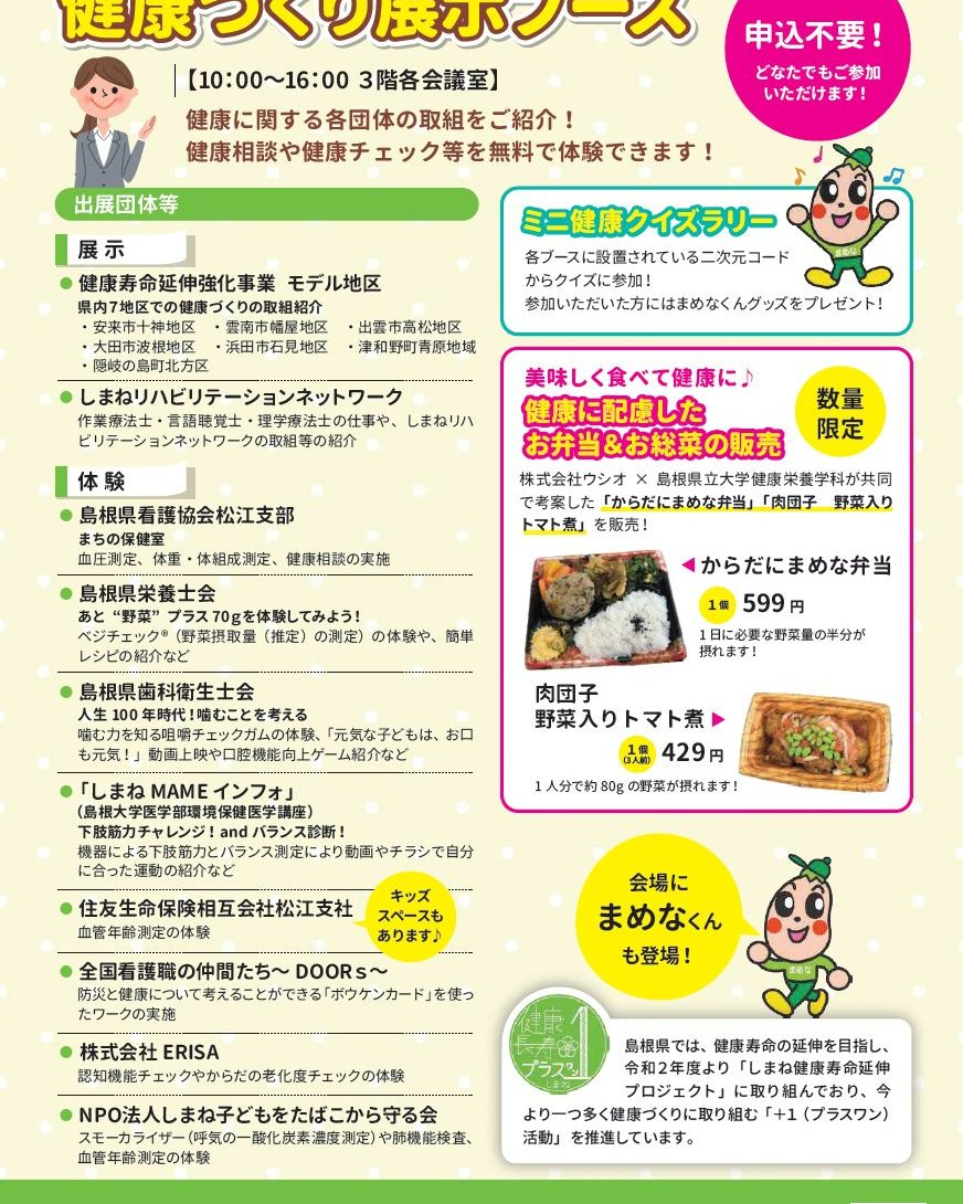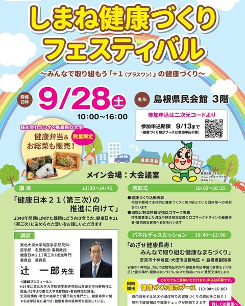 9月28日(土)に島根県民会館で開催される「しまね健康づくりフェスティバル」に本学の山﨑先生と理学療法学科2年生の学生が参加します!