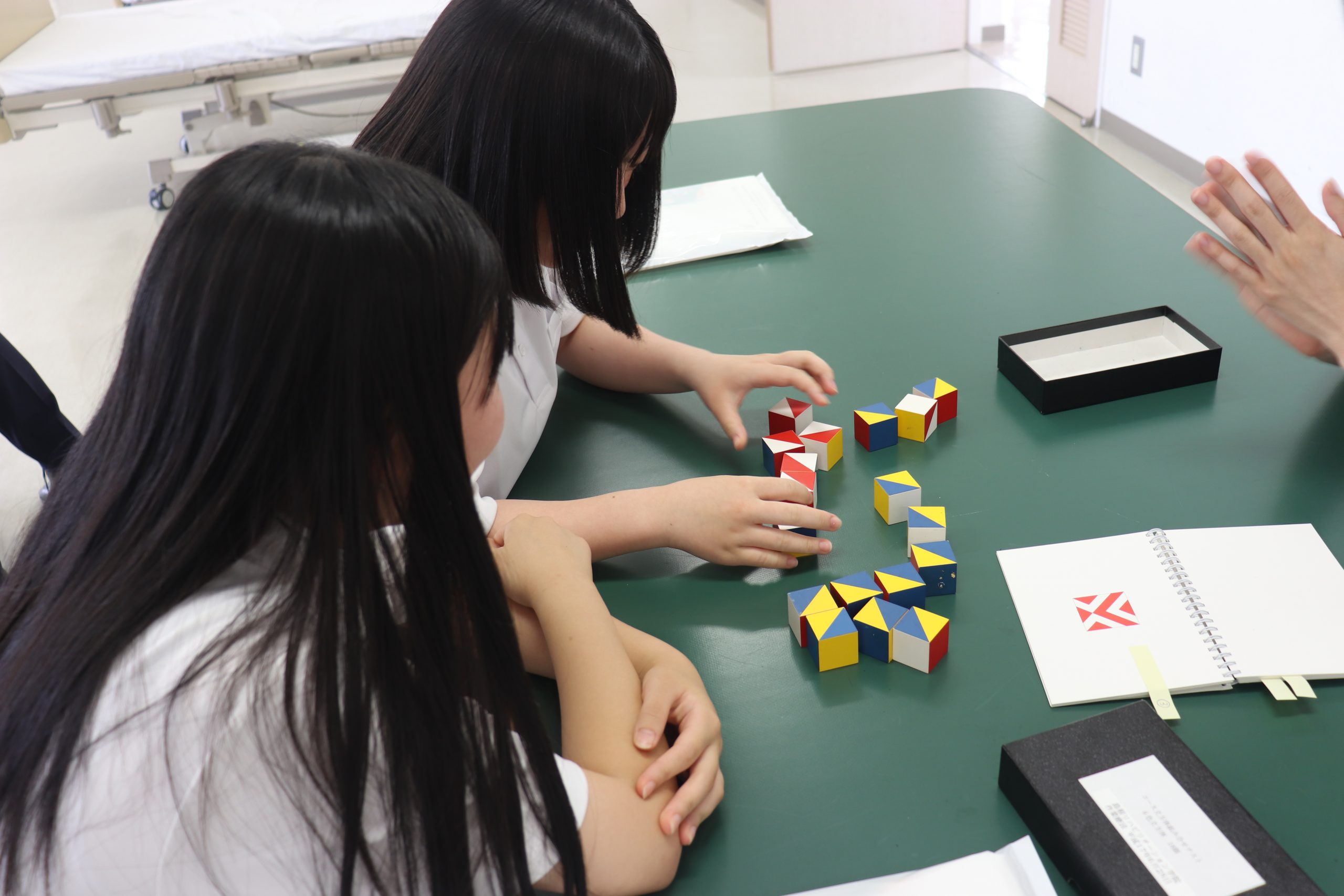 作業療法学科の体験では、「コース立方体」と、絵で表現することで自分の心の中を探る「バウムテスト」を体験していただき、作業療法士ならではの心のアプローチ方法の一面にも触れていただきました😉