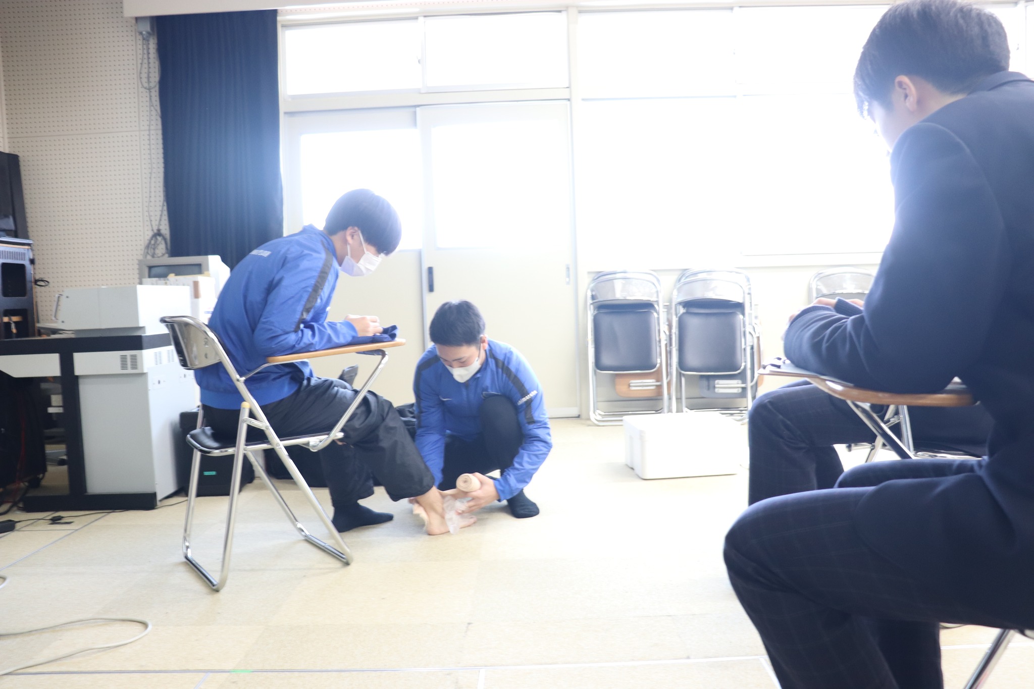 また生徒さん達が実際に行われているスポーツ種目での怪我を想定した“RICES処置”という応急処置の手法も、本学学生の指導の下しっかりと体験、習得していただくことが出来ました!