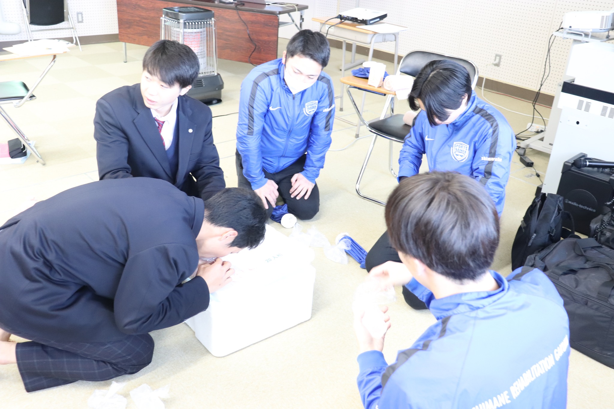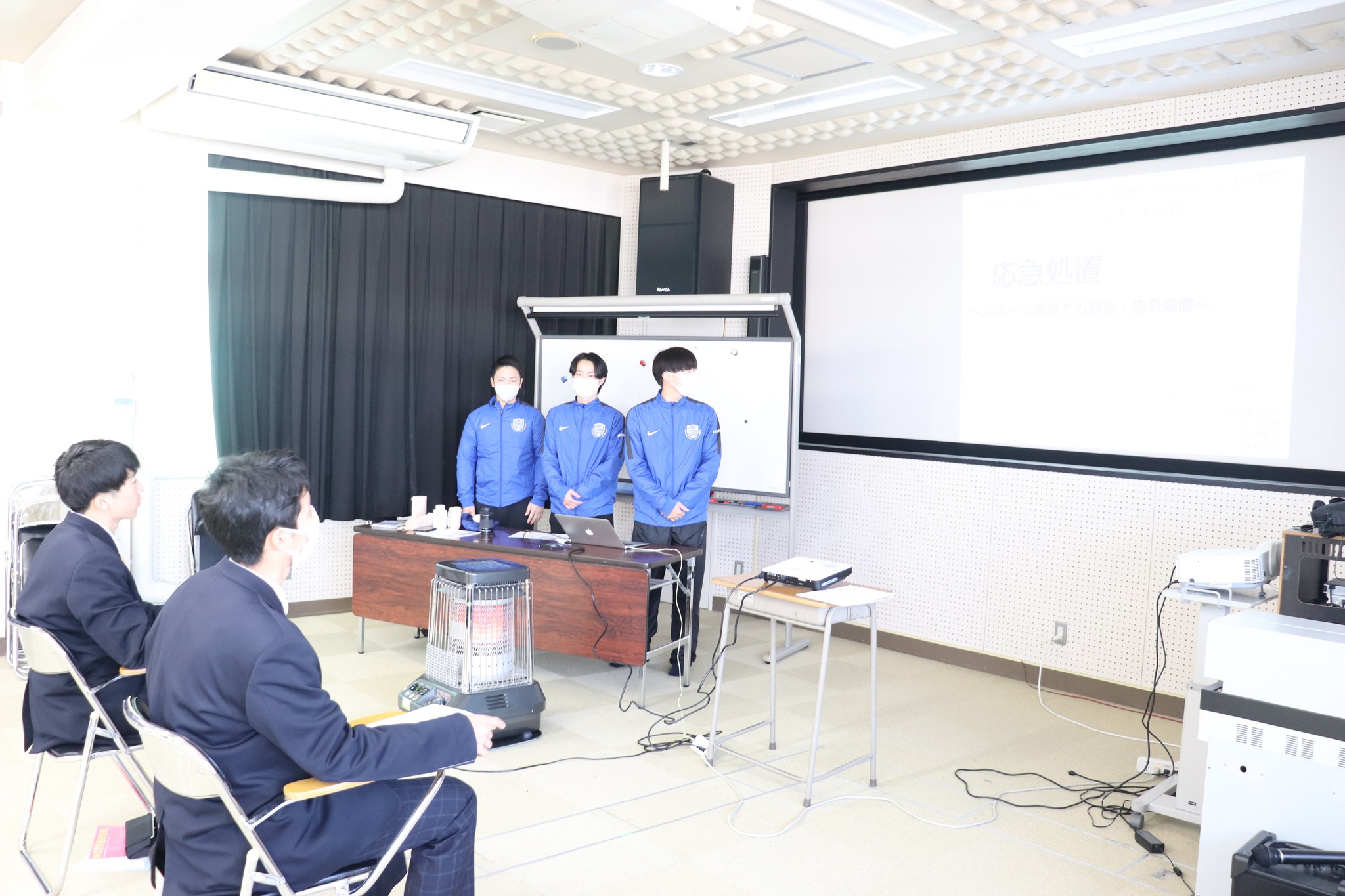 今年度は「応急処置」、「テーピング」、「ウェイトトレーニング」の3テーマのご依頼をいただき、3日程に分けて講義をさせていただくこととなりました。