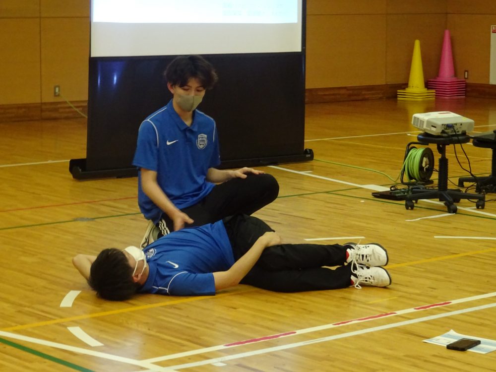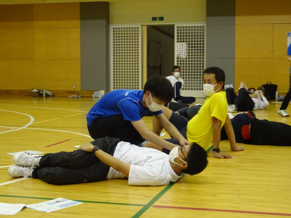 スポーツトレーナーサークル所属の学生が研修会にて指導を行いました。