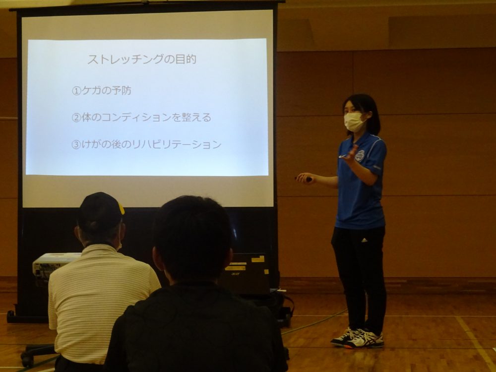 運動前後に行うストレッチをテーマに参加された方々と一緒に身体を動かしながら行いました。