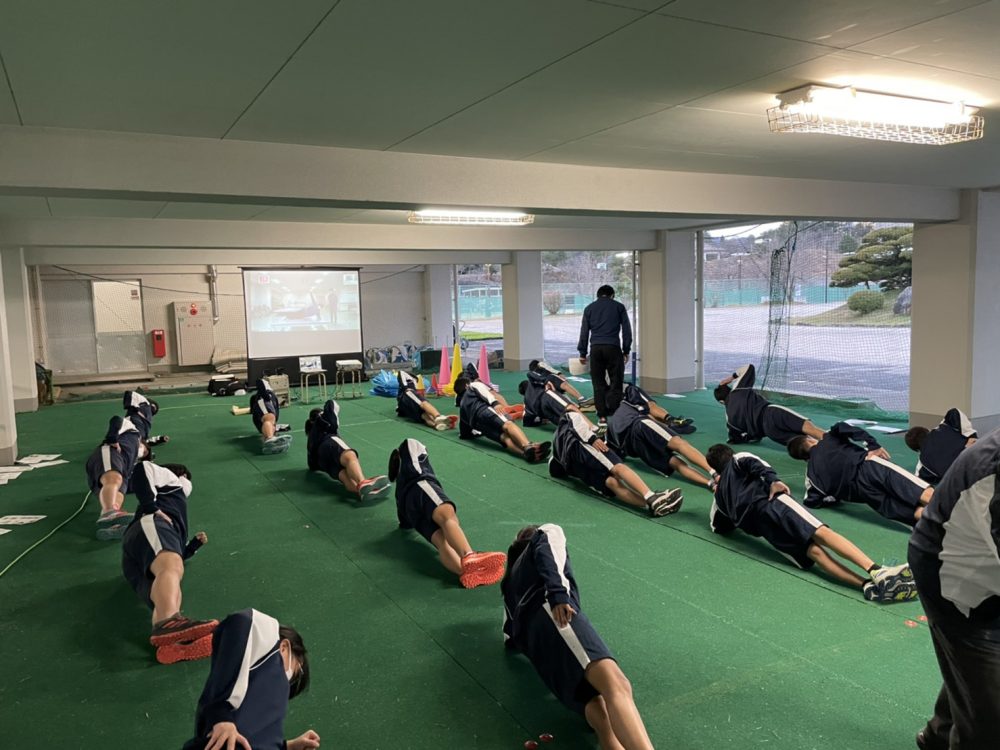 例年、学生と担当教員が近隣の高校や中学校へ訪問し、パフォーマンス向上や、ケガの予防のためのコンディショニング方法を指導する「スポーツ理学療法学」の授業ですが、今年はコロナウィルスの感染状況を踏まえ、オンラインで開催しました。
