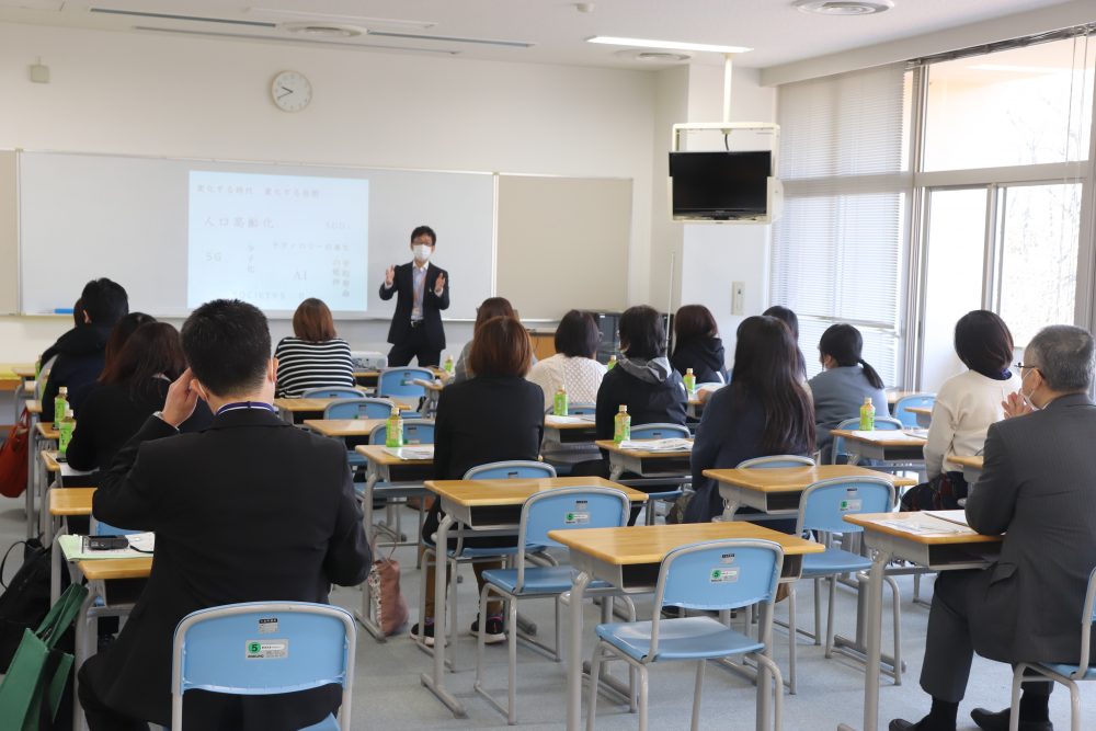米子西高等学校のPTAの方々には本学院の学校紹介、進学費用に関する情報、在校生による学生生活などを説明させていただき、グループに分かれ教員や在校生が校内を案内するキャンパスツアーを行いました。