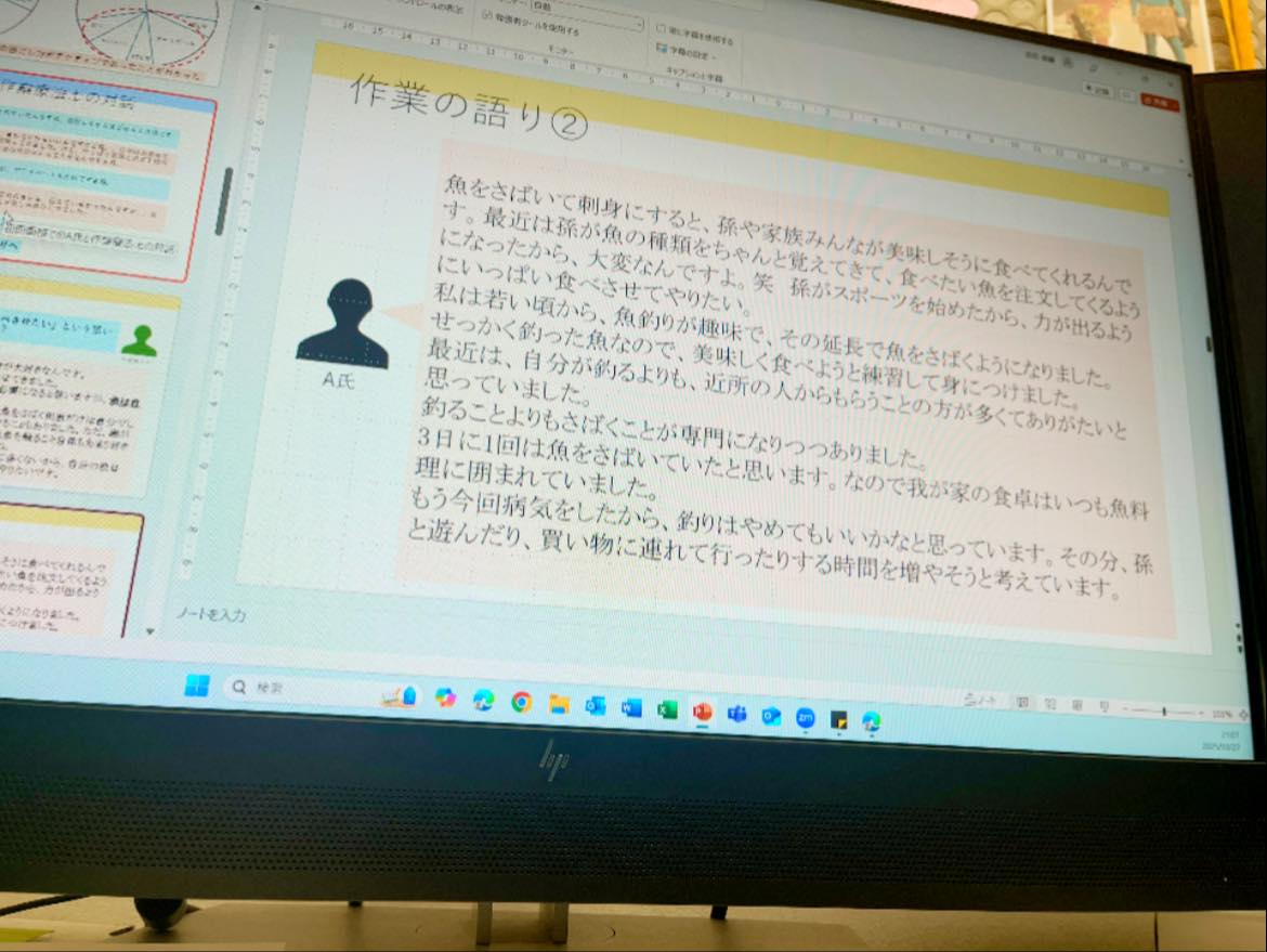 研修会の内容は、作業科学の学問的基礎や作業療法との接点を学ぶような内容でした。