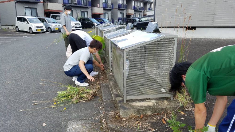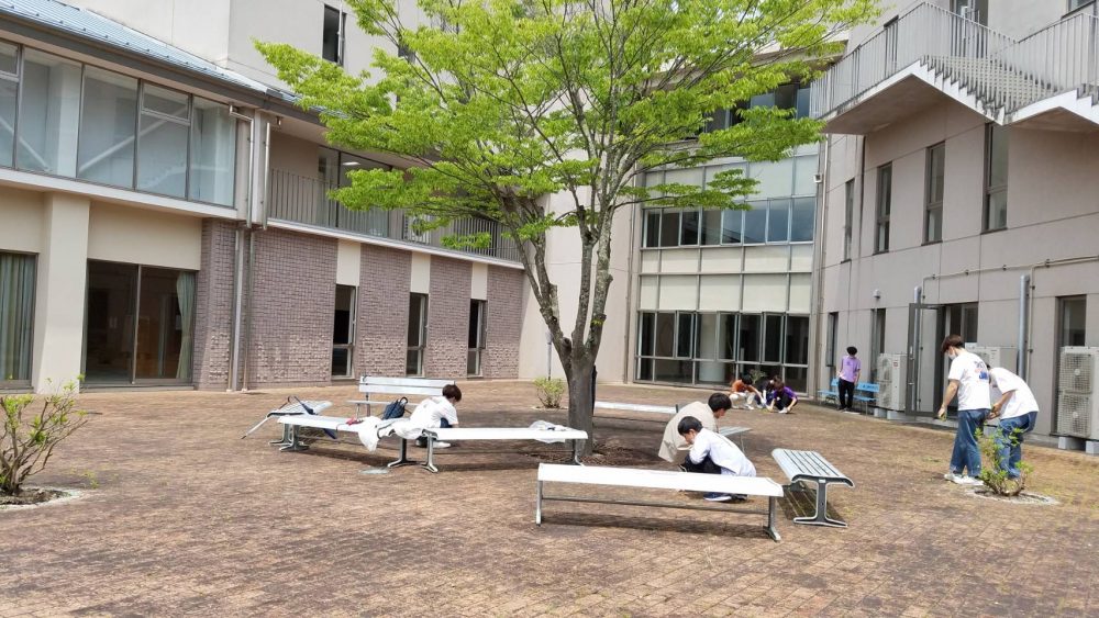 それぞれ、自分の住んでいる宿舎周り、自宅から通っている生徒は奥出雲病院の駐車場や学院周辺の清掃を行いました。
