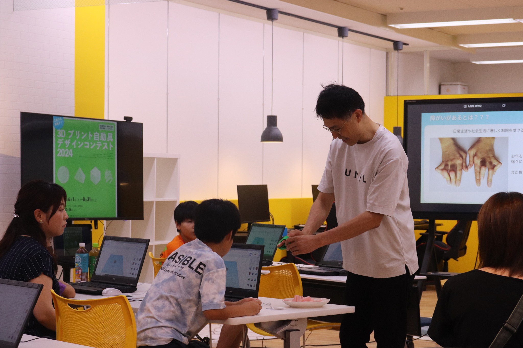 先日、小中学生を対象に、プログラミングから3Dプリンターを使って、世界に1つだけのオリジナルの自助具(便利グッズ)を作成しました。
