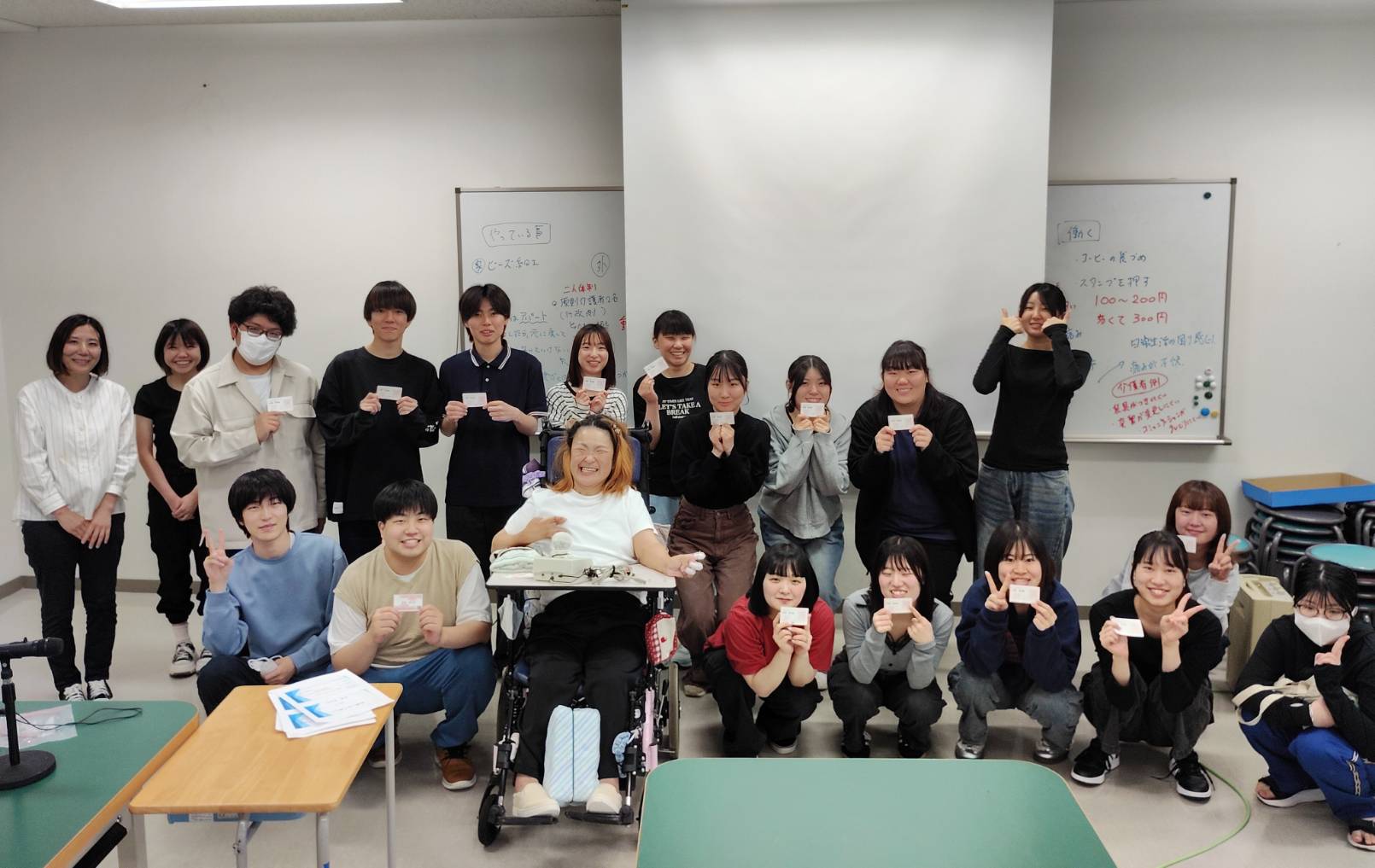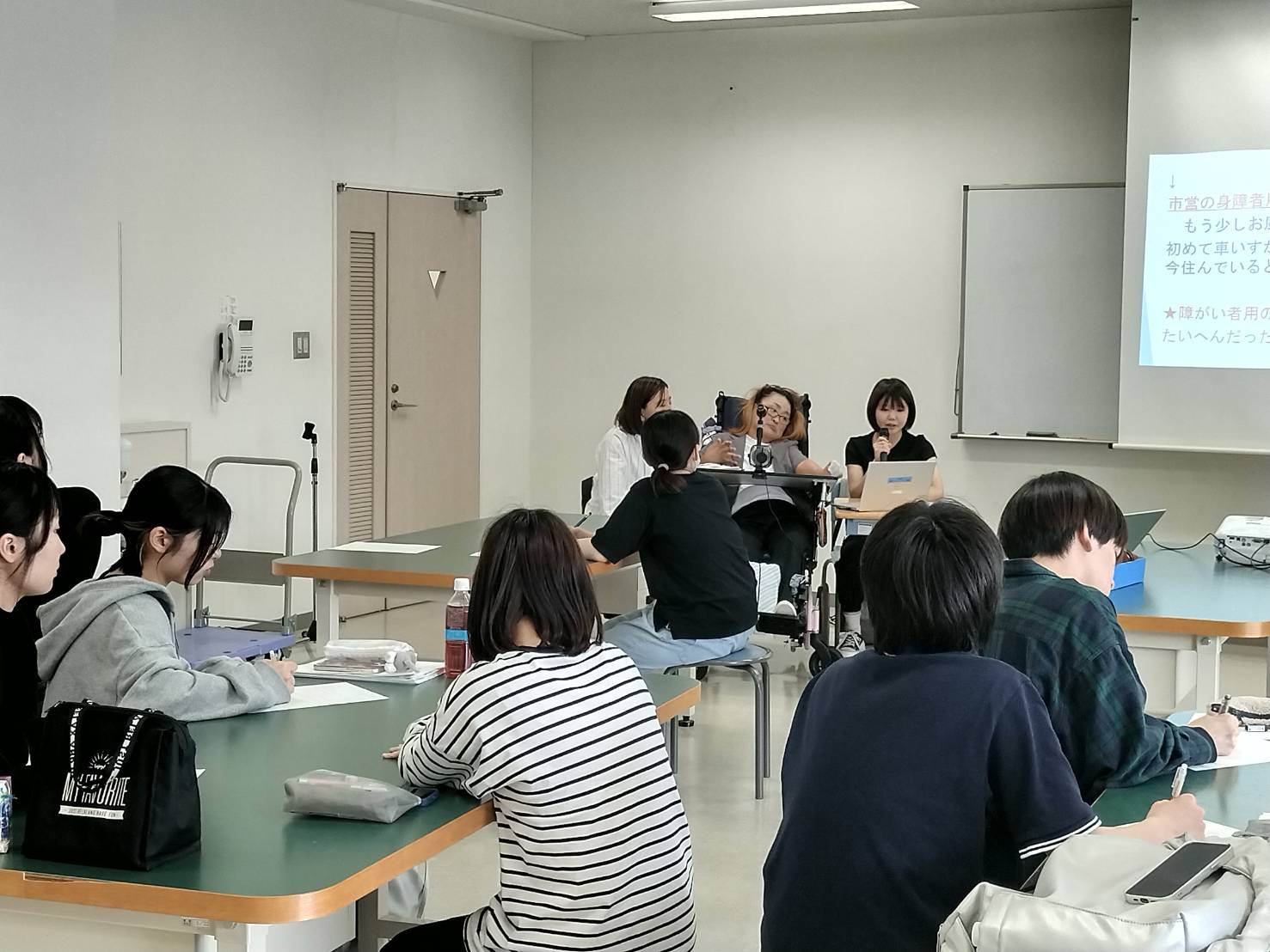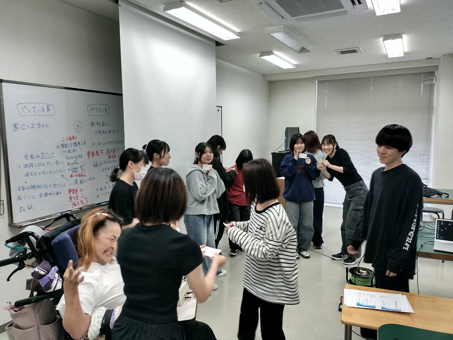授業の後半では、お話をもとに、現在の生活の中でさらにやりたいことや、したいけれどできていないことをお聞きしました。その後、解決に向けた方法をグループに分かれて考え、安達さんにお伝えしました。
