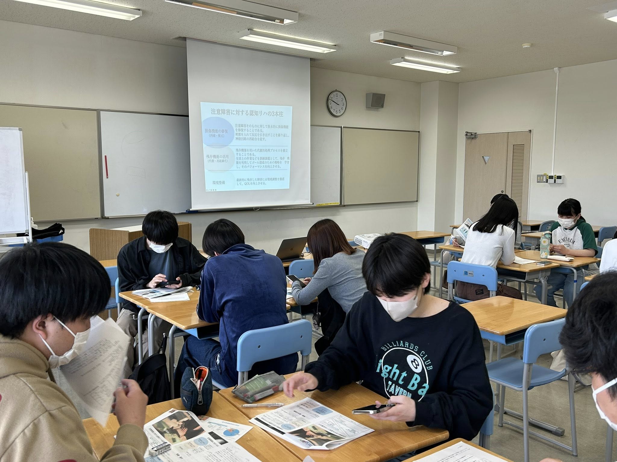 現在、作業療法学科では「高次脳機能障害のリハビリテーション」について学んでいます。
