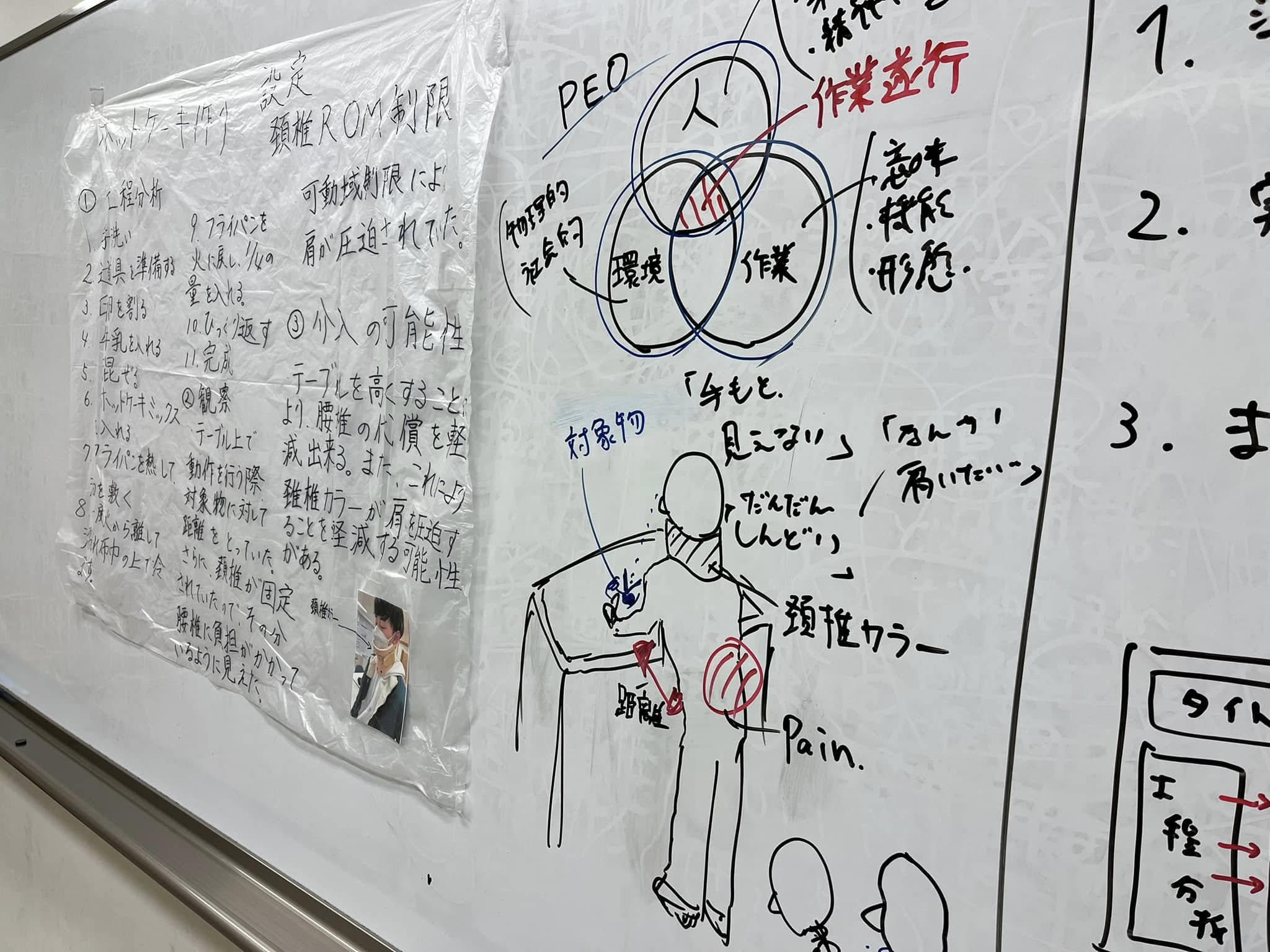 スマホを使って動画を撮影し、解剖学や運動学、あるいは作業科学などの知識を引っ張り出しながら、頑張って分析を行っている様子がみられました。