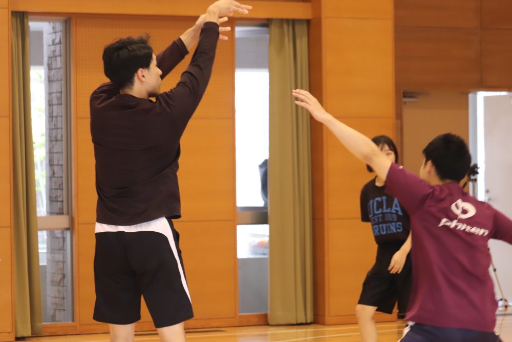 午前中は講堂でバスケットボール、スポーツセンターではバレーボール。