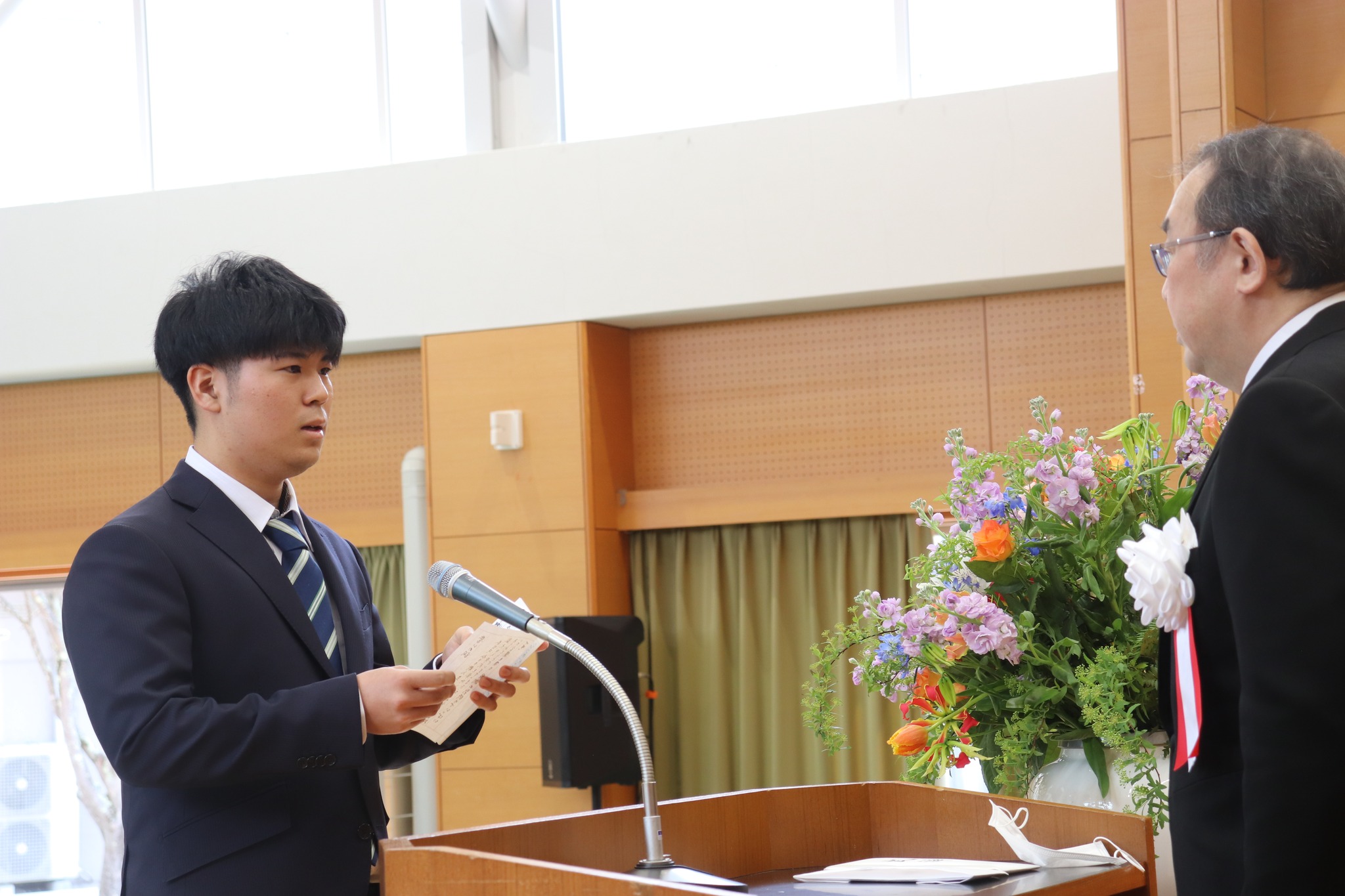 式典では、理事長、学院長からの挨拶や新入生代表として理学療法学科の井谷洸太さん(島根県立大田高等学校出身)が誓いの詞を述べました。