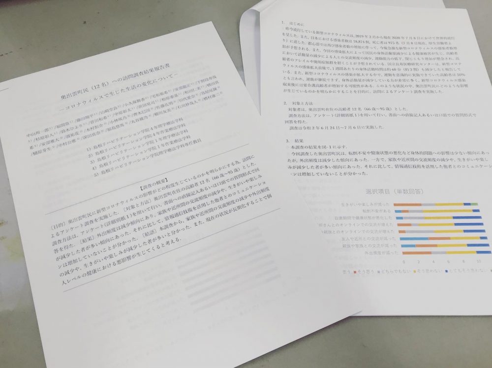 先日この調査結果を奥出雲町健康福祉課に提出しました。学生の想いと努力が、奥出雲町の政策に影響を与え、地域の健康増進に結び付くものと思います。