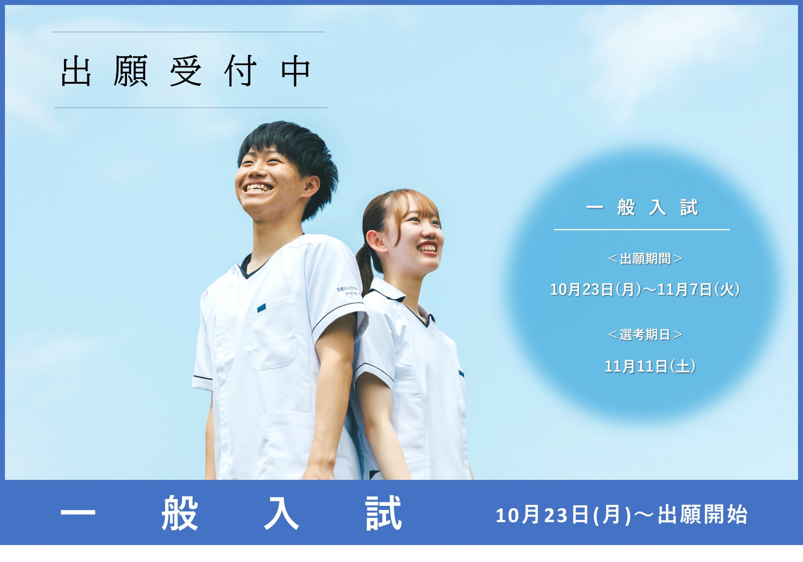 本日、10月23日(月)より、一般入試1期の願書を受付いたします。