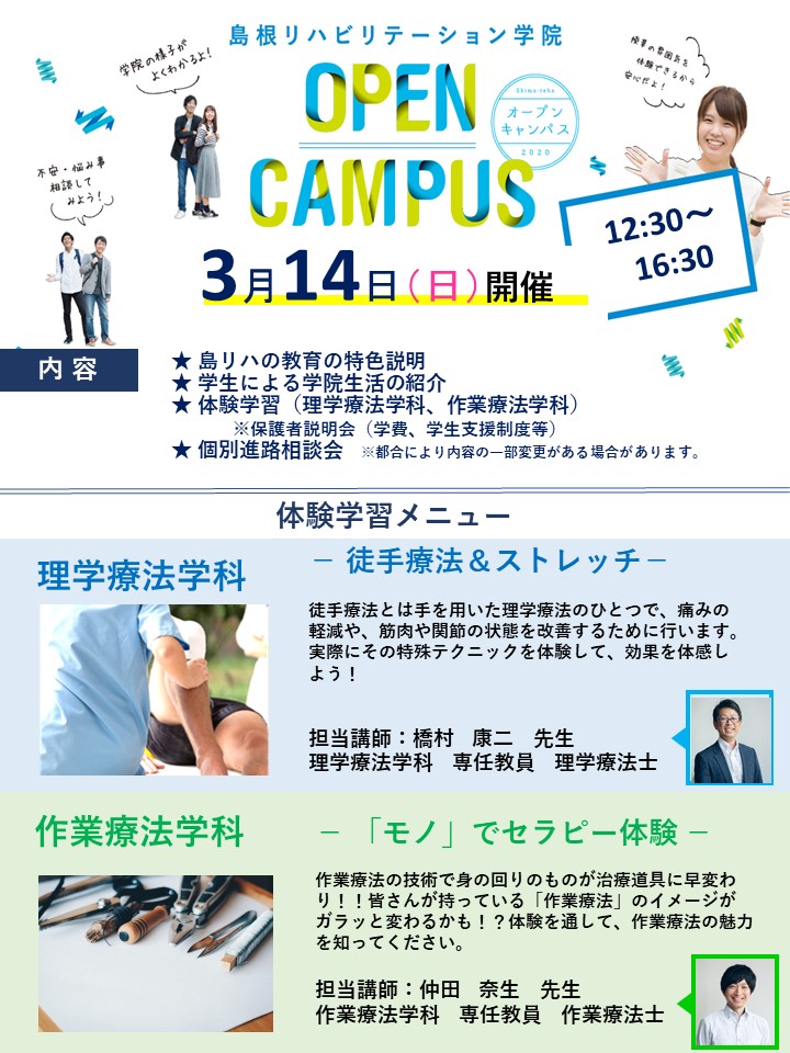 春休み中、島リハでは毎週オープンキャンパスを開催します!