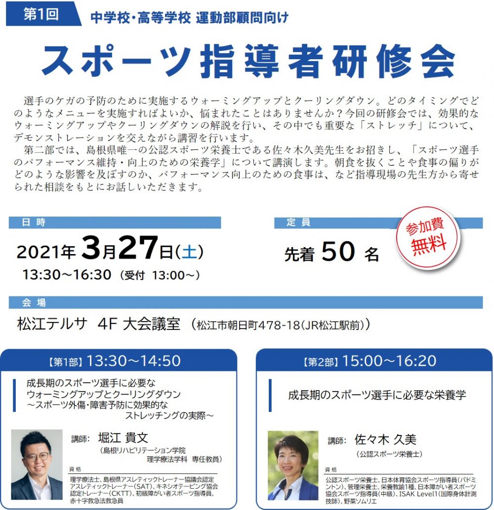 3月27日(土)第一回 スポーツ指導者研修会を開催します