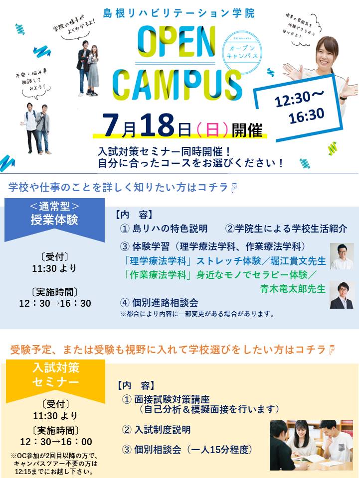 7月18日(日)オープンキャンパス(入試セミナー/授業体験型)開催します!