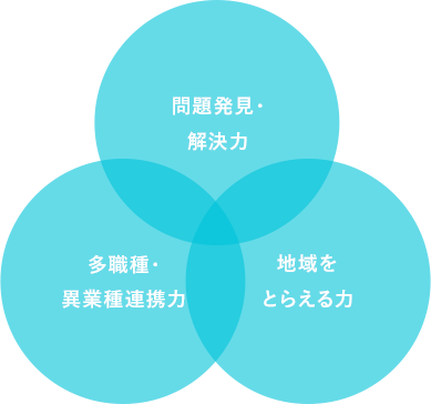 異なる職種や業種と連携し、お互いの強みを活かしながら柔軟な発想で効果の高い課題解決をはかる力を身につける。 - 地域をとらえる力