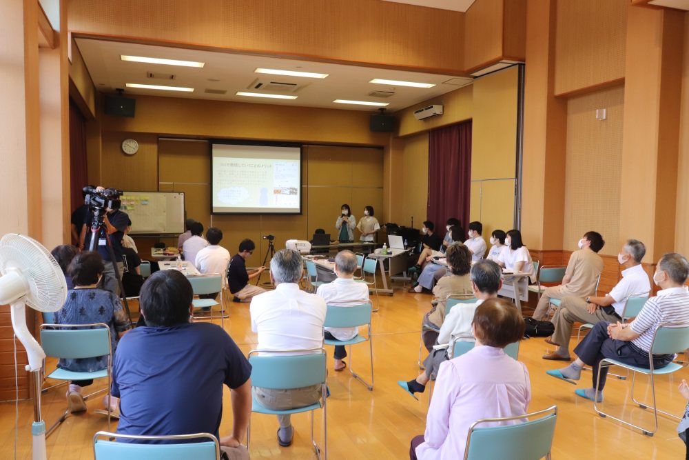 後日、インタビューをさせていただいた地域の方々をお招きして発表を行いました。学生からは地域の幅広い年齢の方々が気軽に集まることのできるカフェを作る、高齢者の方々が得意分野で先生となってだれでも参加できるサークル教室を開くなど様々なアイデアが出ていました。