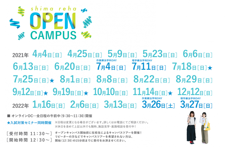 島リハは、1年を通して毎月オープンキャンパスを開催しています!