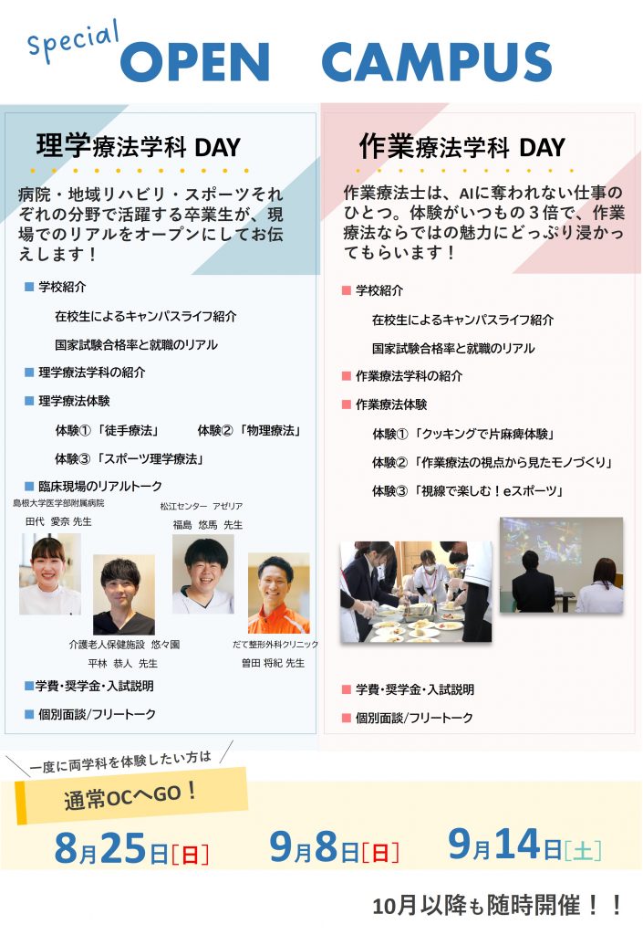 各学科に特化したスペシャルオープンキャンパスのお知らせです!