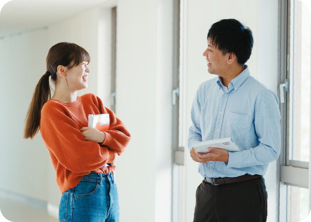 でも、「相談していいことだと、思っていませんでした」と、はじめは誰にも話せなかった。教員がさりげなく声をかけ、“ここで話しても大丈夫”という小さな安心の場を作ることで、少しずつ打ち明けられるように。学費のこと、奨学金のこと、体調のこと——相談の習慣が“自分を守る力”に変わっていった。「ひとりで抱えなくていい」と思えたことが、最大のサポートになった。