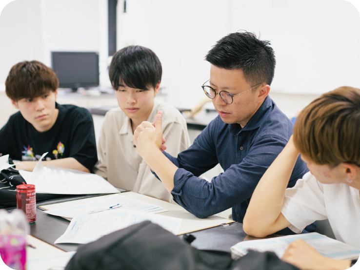 実践と同時に、教員の指導とディスカッションを通し、自らの技術の習得を確かめます。