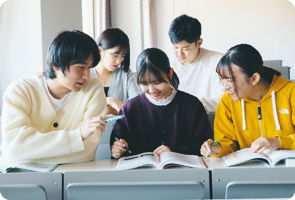 - 本学は、「どう生きたいか」から「どう働きたいか」を考え、キャリア形成のプランを立てていきます。1年次からの担任との対話や多くのリアルな機会を通じて、キャリア形成を促進しています。